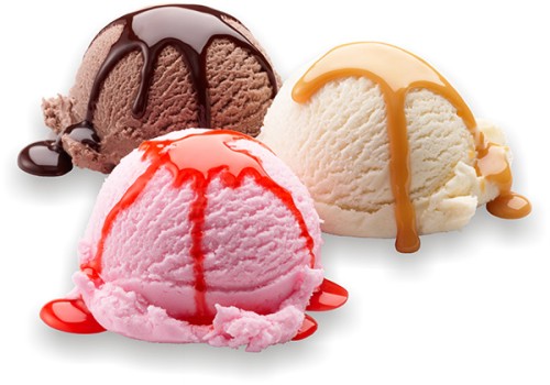 Фруктовые и шоколадные виды мороженого.